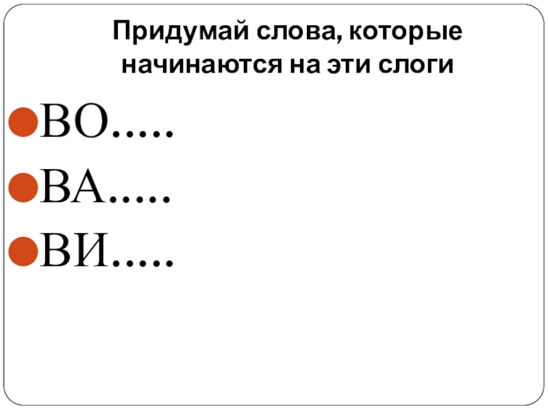 Придумай слова, которые начинаются на эти слогиВО.....ВА.....ВИ.....
