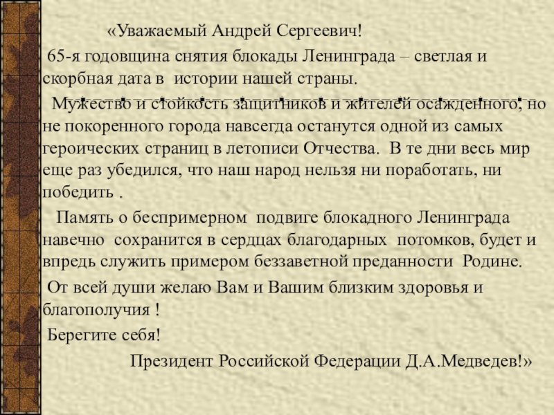 Слайд 19 «Уважаемый Андрей Сергеевич!