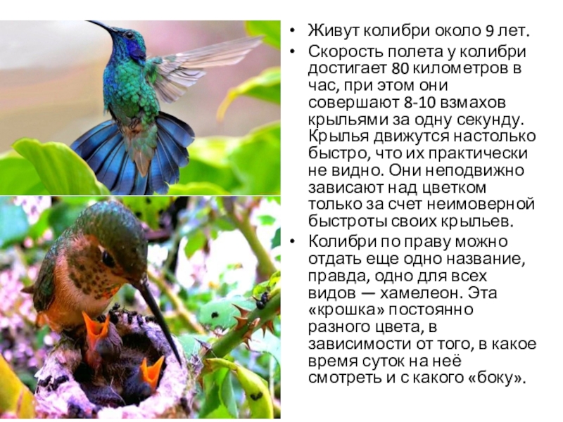 Слайд 4Живут колибри около 9 лет.