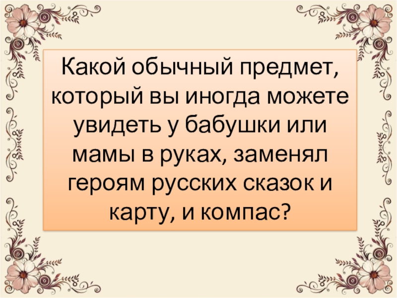 Какой обычный предмет, который вы иногда можете увидеть у бабушки или мамы в руках, заменял героям русских сказок и карту, и компас?