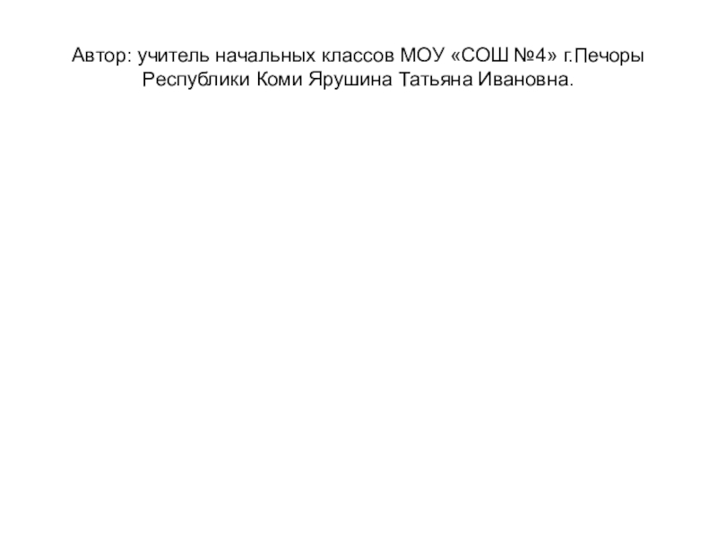 Слайд 2Автор: учитель начальных классов МОУ «СОШ №4» г.Печоры Республики Коми Ярушина