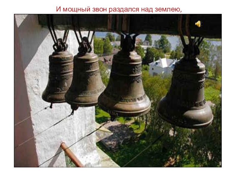 Слайд 9И мощный звон раздался над землею, И воздух весь, гудя, затрепетал Певучие, серебряные