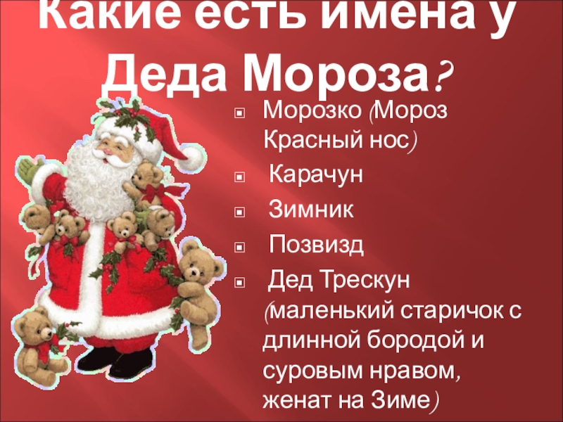 Слайд 3Какие есть имена у Деда Мороза?