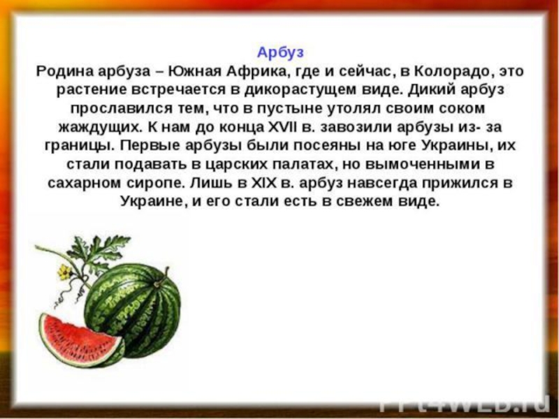 Презентация, доклад к внеклассному мероприятию Арбузные посиделки