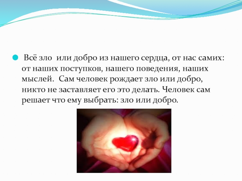 Слайд 9 Всё зло или добро из нашего сердца, от нас самих: