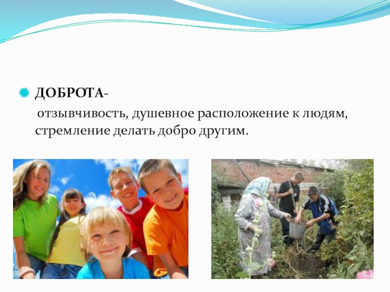 отзывчивость, душевное расположение к людям, стремление делать добро другим.