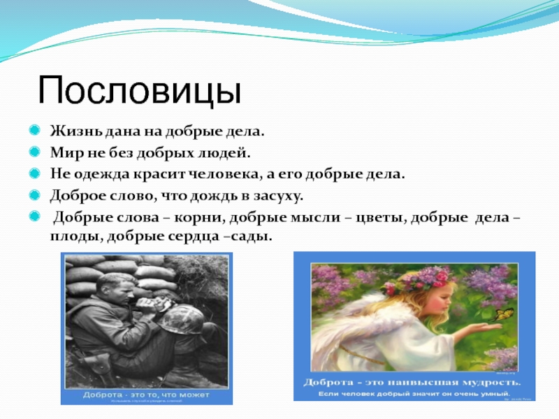 Добрые слова – корни, добрые мысли – цветы, добрые дела –плоды, добрые сердца –сады.