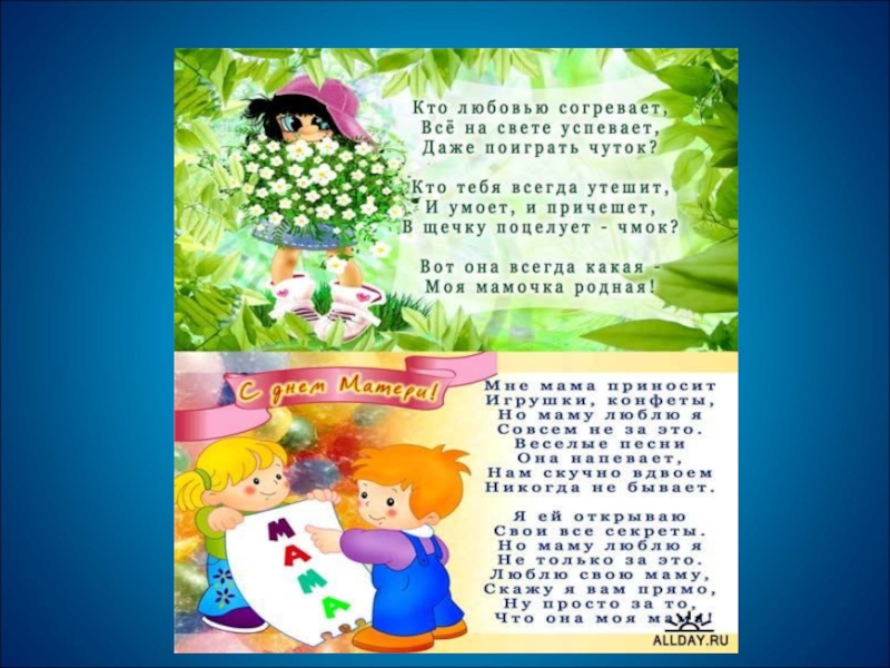 Презентация к внеклассному мероприятию День матери Детские презентации