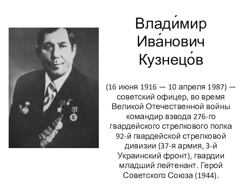 Слайд 2Влади́мир Ива́нович Кузнецо́в