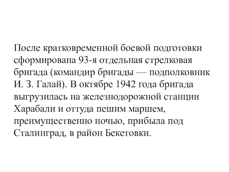 Слайд 6После кратковременной боевой подготовки сформирована 93-я отдельная стрелковая бригада (командир бригады —