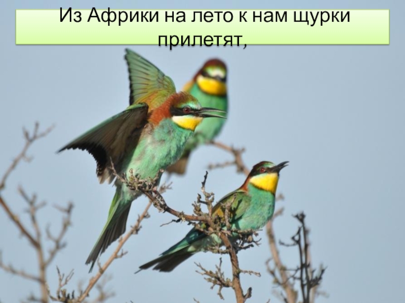 Слайд 2 Из Африки на лето к нам щурки прилетят,