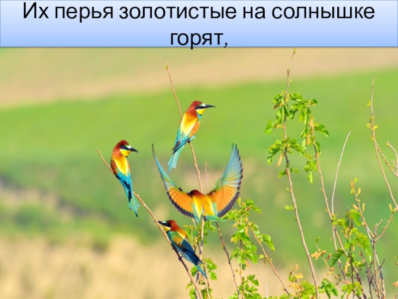 Слайд 4Их перья золотистые на солнышке горят,