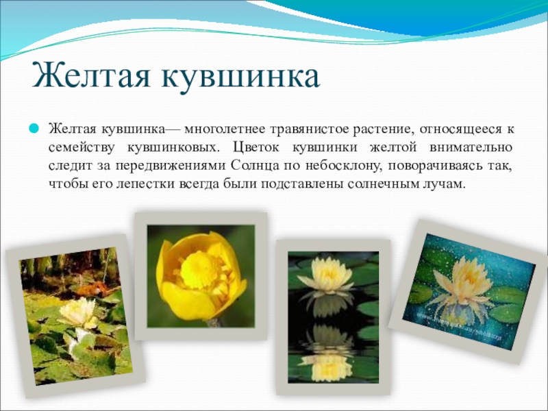 Желтая кувшинка— многолетнее травянистое растение, относящееся к семейству кувшинковых. Цветок