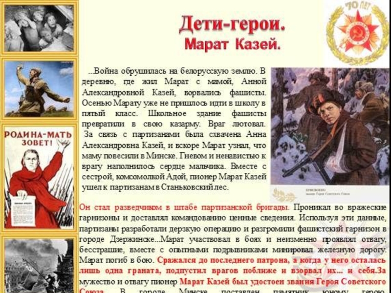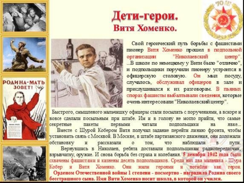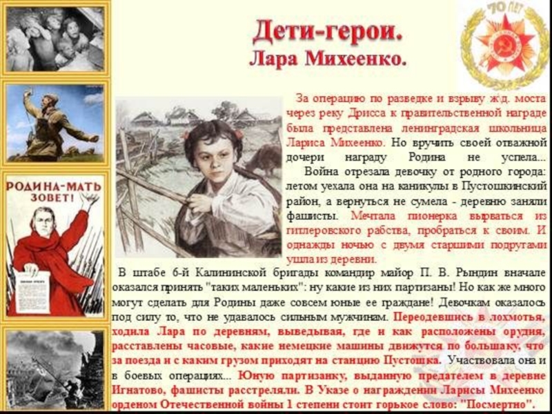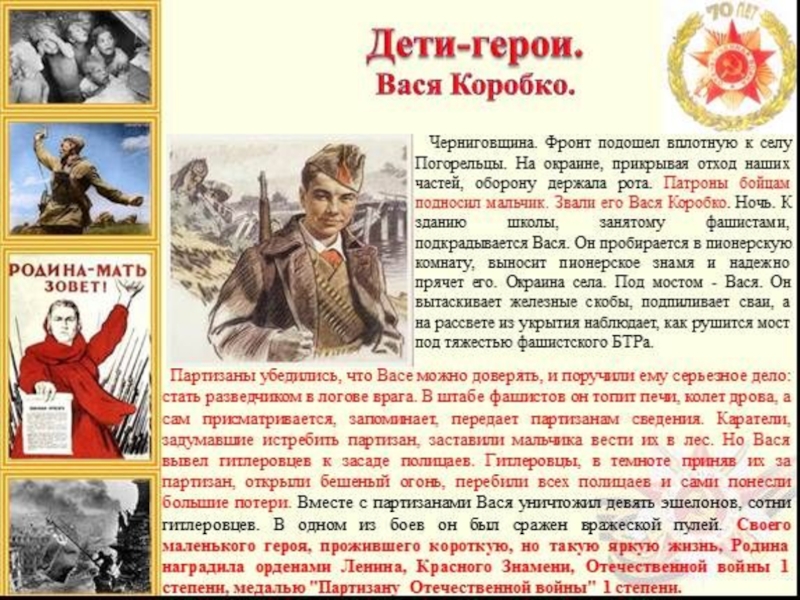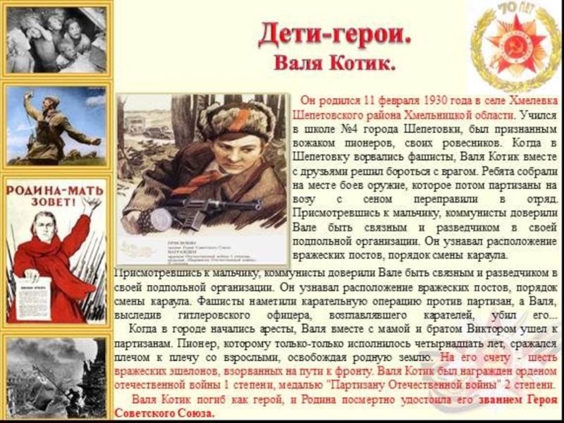 Презентация к внеклассному мероприятию Дети-герои ВОВ Детские презентации