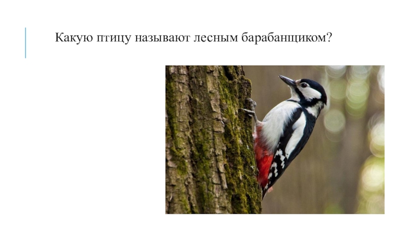 Слайд 10Какую птицу называют лесным барабанщиком?