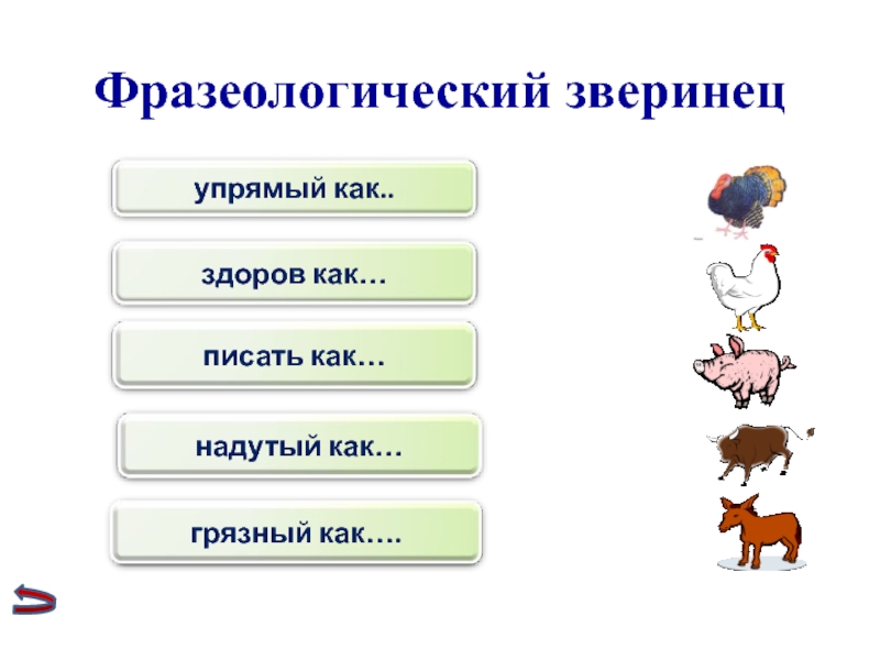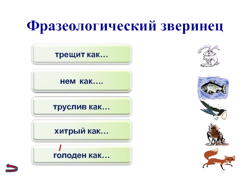 Слайд 4Фразеологический зверинец