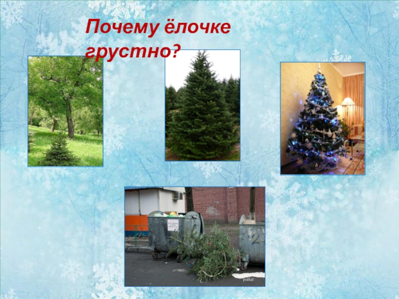 «Смолистую, колючуюНесут меня на праздник в дом.Украсят, полюбуютсяИ выбросят потом!...Помогите!»