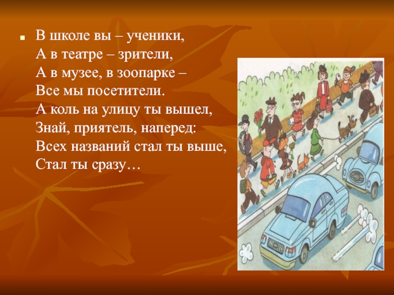 Слайд 30Если на остановке стоит автобус, не обходи его ни спереди, ни