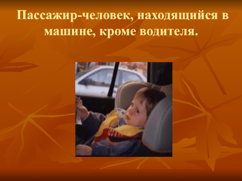 Слайд 7Пассажир-человек, находящийся в машине, кроме водителя.