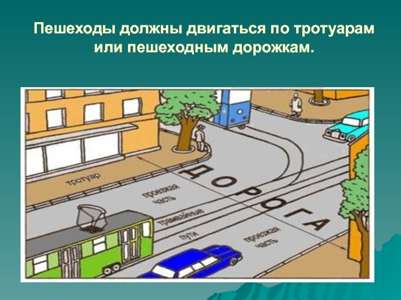 Слайд 15Пешеходы должны двигаться по тротуарам или пешеходным дорожкам.