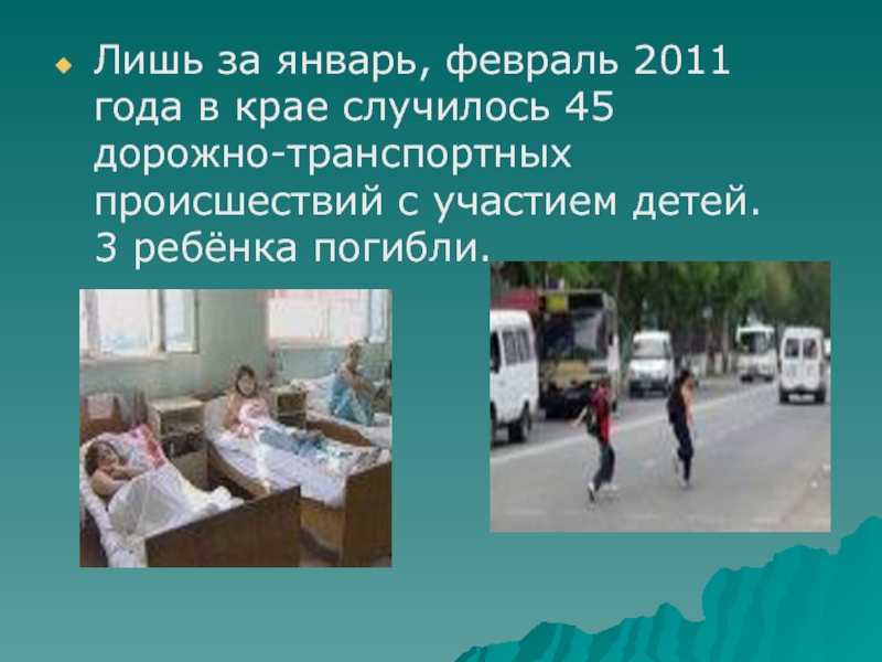 Слайд 12Лишь за январь, февраль 2011 года в крае случилось 45 дорожно-транспортных