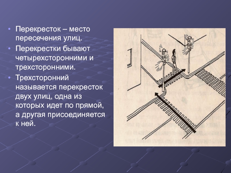 Слайд 21Если одну улицу пересекает другая, такой перекресток называется четырехсторонним