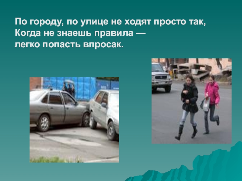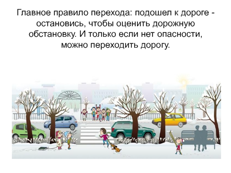 Слайд 27Главное правило перехода: подошел к дороге - остановись, чтобы оценить дорожную