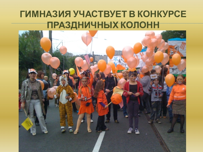 Слайд 5ГИМНАЗИЯ УЧАСТВУЕТ В КОНКУРСЕ ПРАЗДНИЧНЫХ КОЛОНН