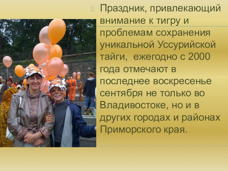 Праздник, привлекающий внимание к тигру и проблемам сохранения уникальной Уссурийской тайги, ежегодно с 2000 года отмечают в