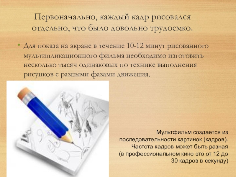 Мультфильм создается из последовательности картинок (кадров). Частота кадров может быть разная