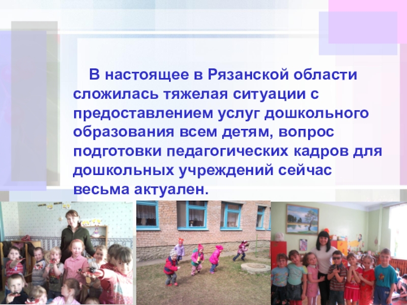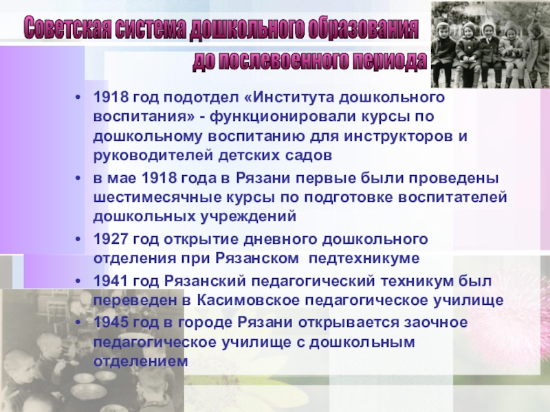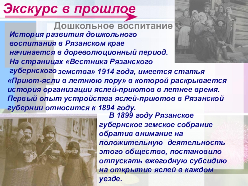 История развития дошкольного воспитания в Рязанском крае начинается в дореволюционный период. На страницах «Вестника Рязанского губернского