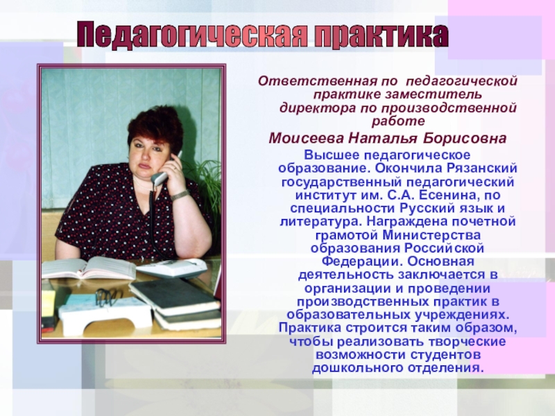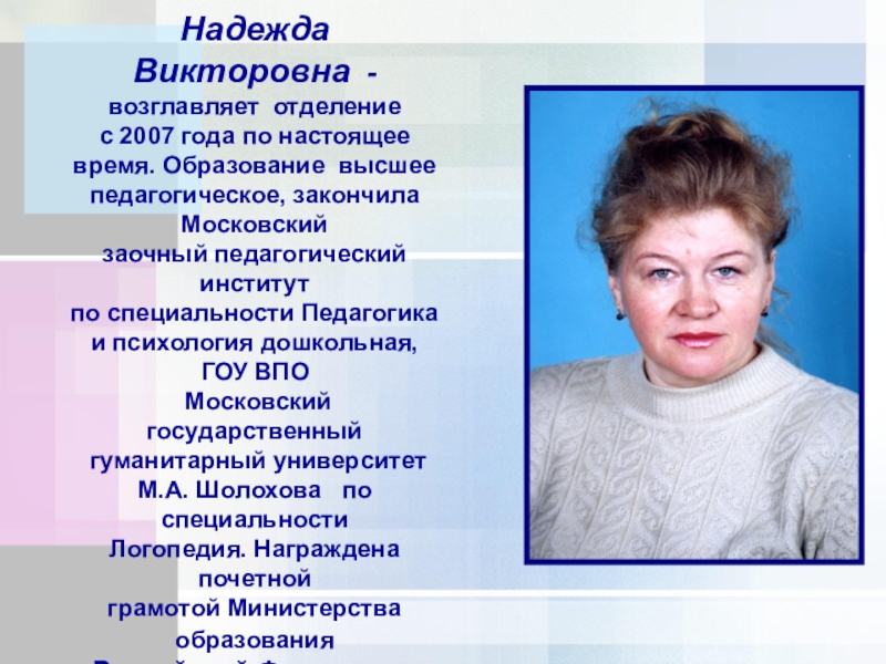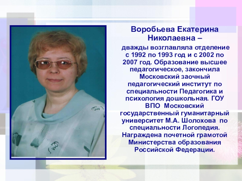 Степахина Людмила Александровна - преподаватель Специальной (коррекционной) дошкольной педагогики и Методика развития зрительного и слухового восприятия