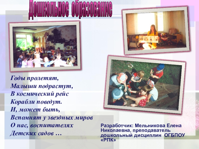 Разработчик: Мельникова Елена Николаевна, преподаватель дошкольный дисциплин ОГБПОУ «РПК»
