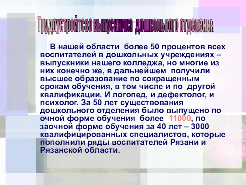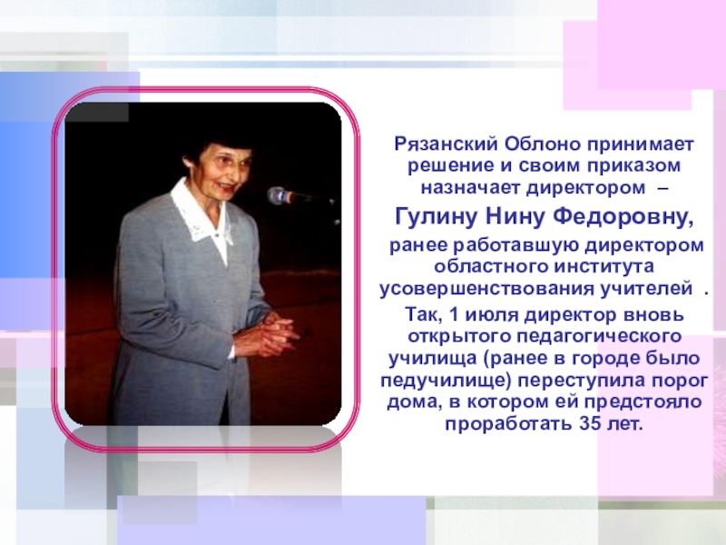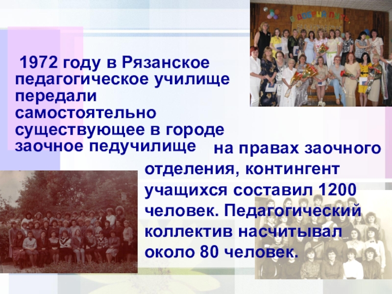 1972 году в Рязанское педагогическое училище передали самостоятельно существующее в городе заочное педучилище