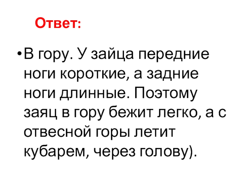 Куда зайцу бежать удобней: с горы или в гору? Почему?