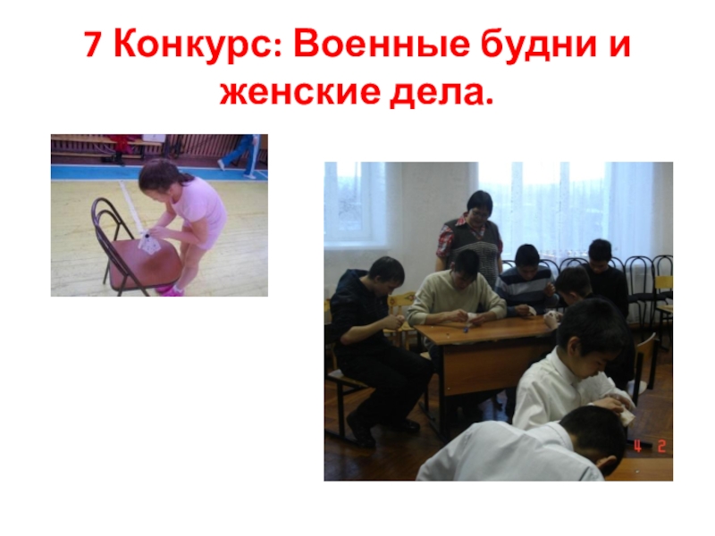 Слайд 107 Конкурс: Военные будни и женские дела.