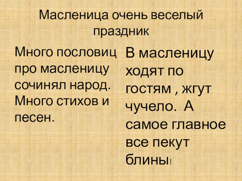 В масленицу ходят по гостям , жгут чучело. А самое главное все пекут блины!