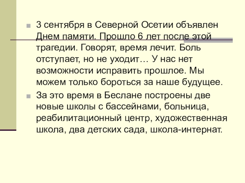 Слайд 313 сентября в Северной Осетии объявлен Днем памяти. Прошло 6 лет