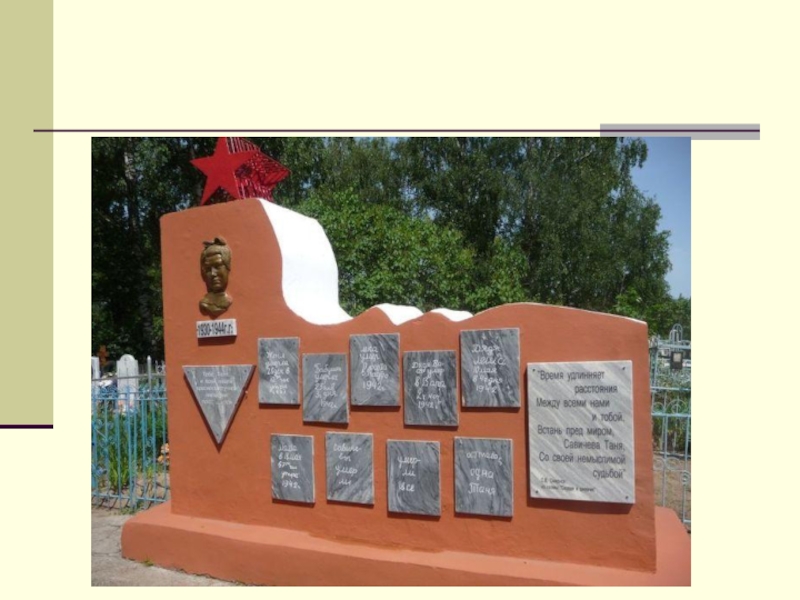 Слайд 6Первой в семье Савичевых умерла Женя. В этот день Таня сделала