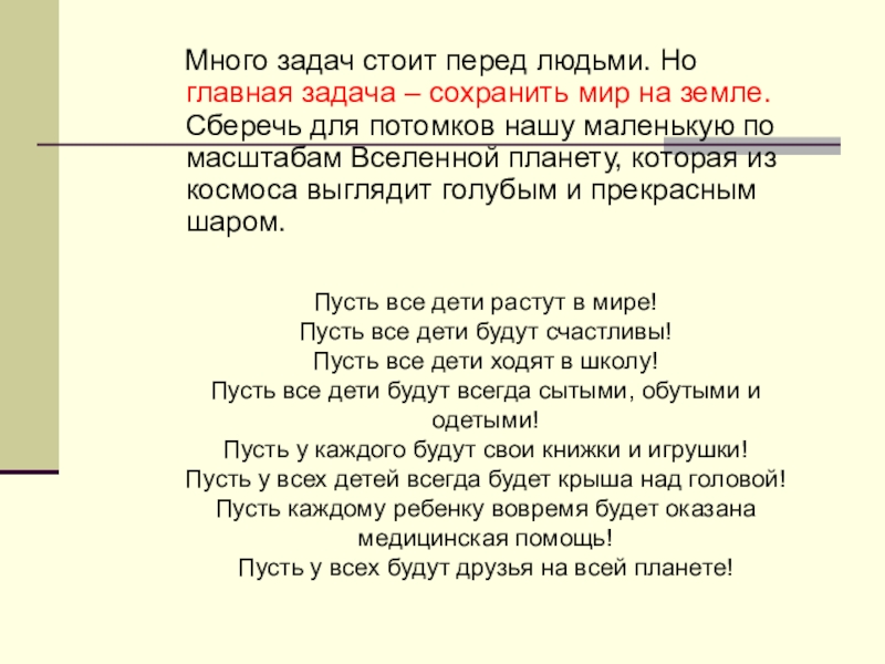 Слайд 35 Много задач стоит перед людьми. Но главная задача –