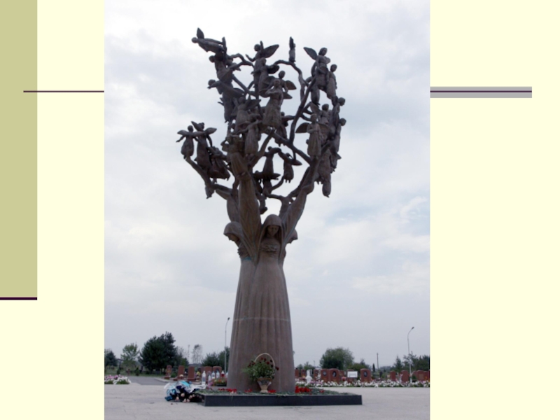 Возведён памятник “Дерево скорби” жертвам бесланской трагедии. Его скульптор – Заурбек Дзангов. Памятник представляет собой стоящих спиной друг к другу трех женщин, над которыми в небо улетают ангелы, символизирующие погибших детей