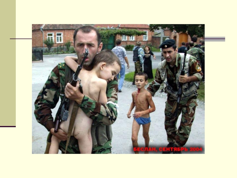 Слайд 24Случилось по-иному. Днем 3 сентября в школе прогремел взрыв. Началась паника,