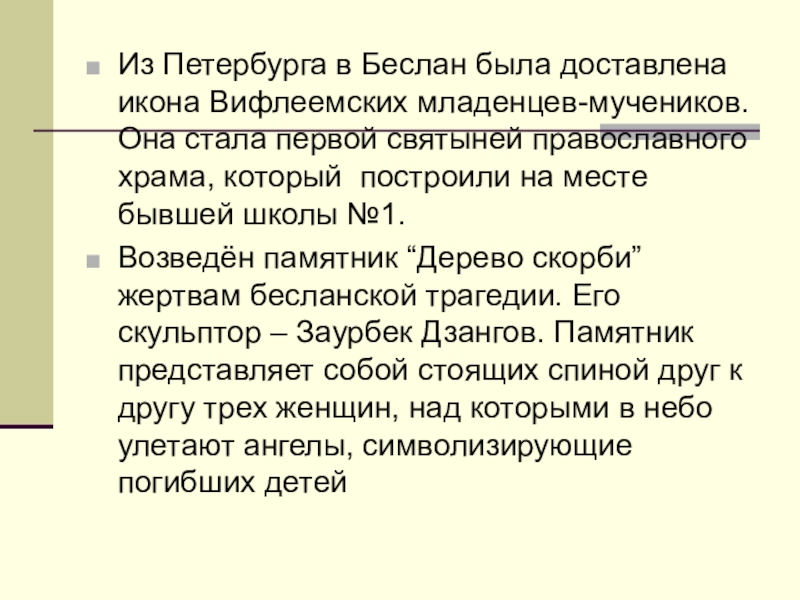 Слайд 33Из Петербурга в Беслан была доставлена икона Вифлеемских младенцев-мучеников. Она стала