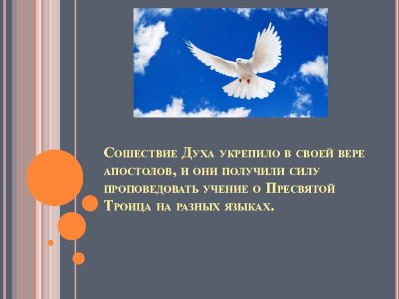 Слайд 5Сошествие Духа укрепило в своей вере апостолов, и они получили силу