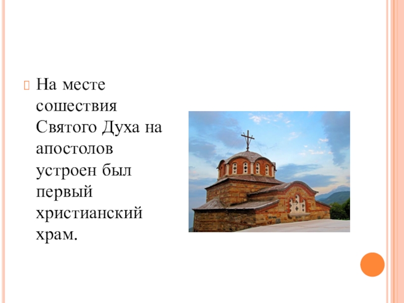 Слайд 6На месте сошествия Святого Духа на апостолов устроен был первый христианский