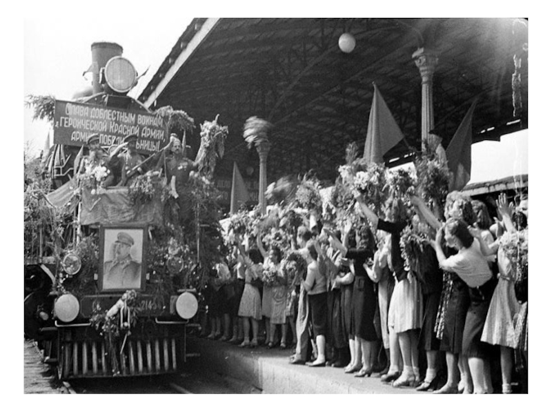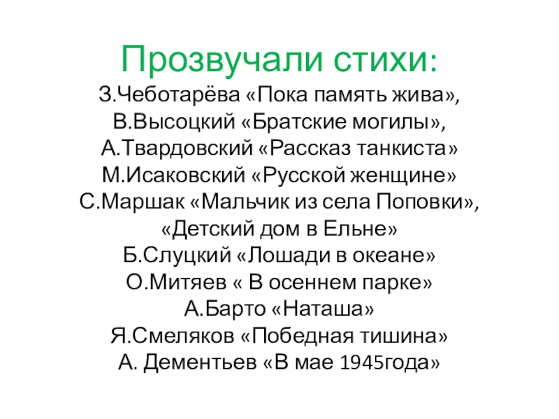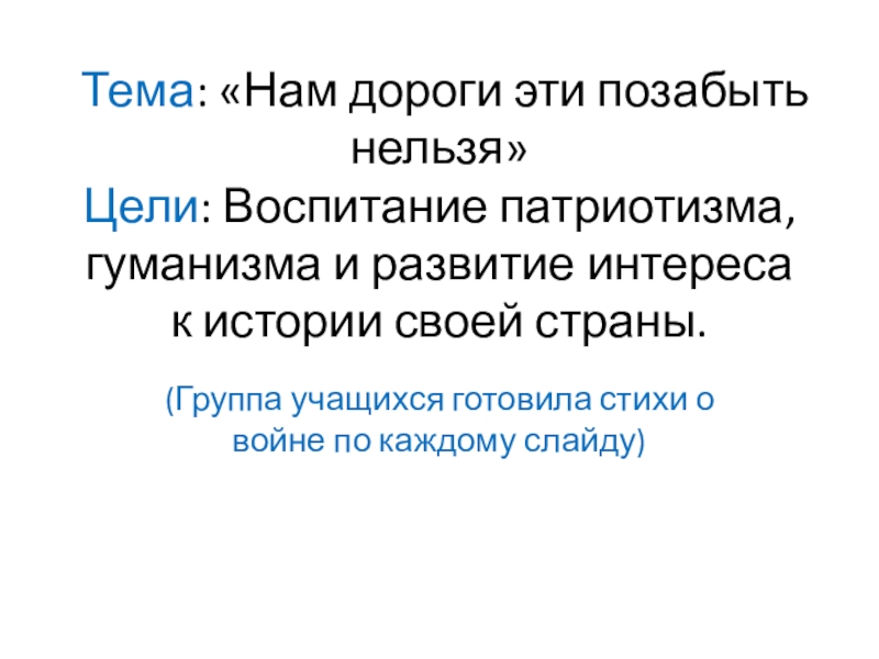 (Группа учащихся готовила стихи о войне по каждому слайду)