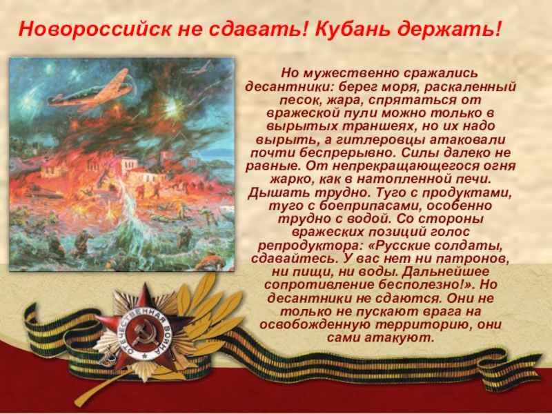 Слайд 5Новороссийск не сдавать! Кубань держать!