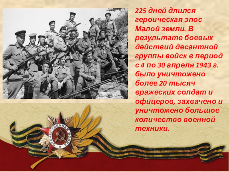 225 дней длился героическая эпос Малой земли. В результате боевых