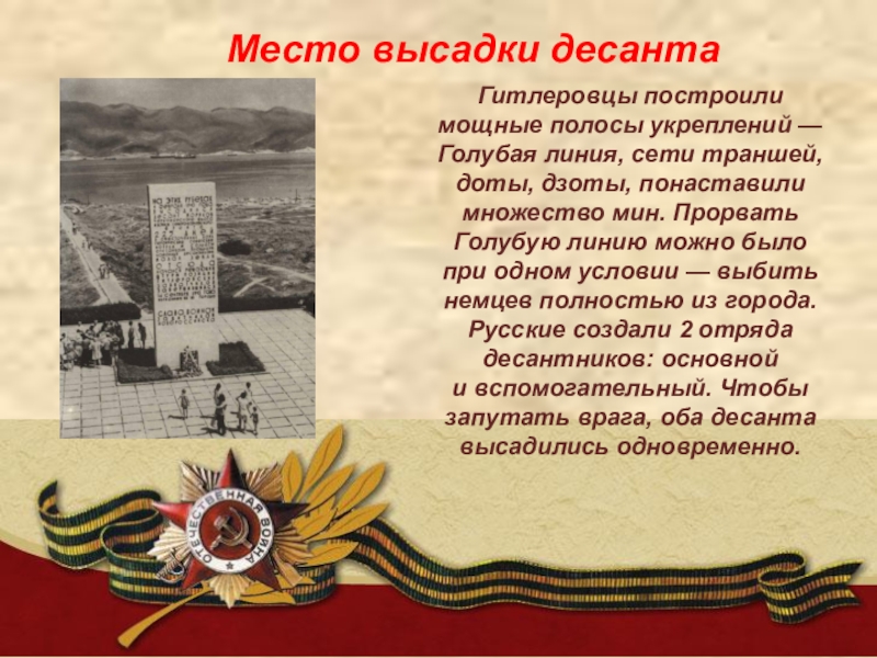 Слайд 7Место высадки десанта