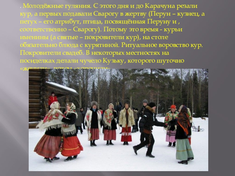 Слайд 11. Молодёжные гуляния. С этого дня и до Карачуна резали кур,